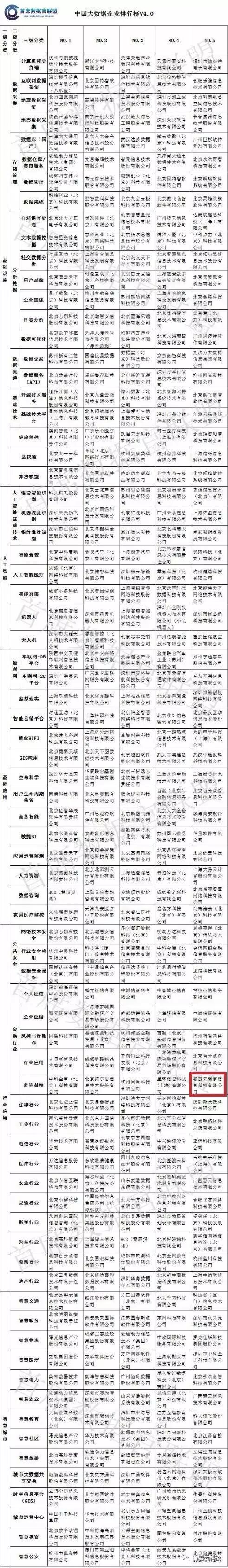 中国大数据企业排行榜V4.0